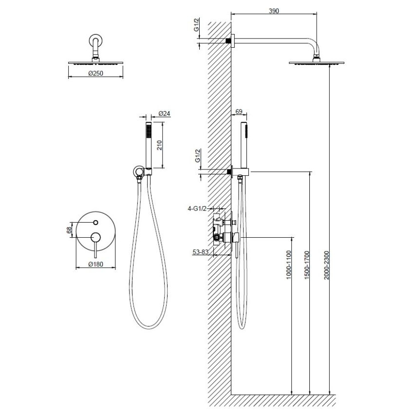 Baterie duș ASTRO încastrat - Auriu