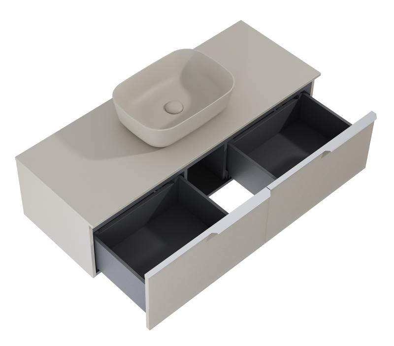 Acest dulap baie 120cm cu 2 sertare bej mat îmbină estetica modernă cu funcționalitatea superioară, fiind ideal pentru cei care caută mobilier de baie elegant și practic.