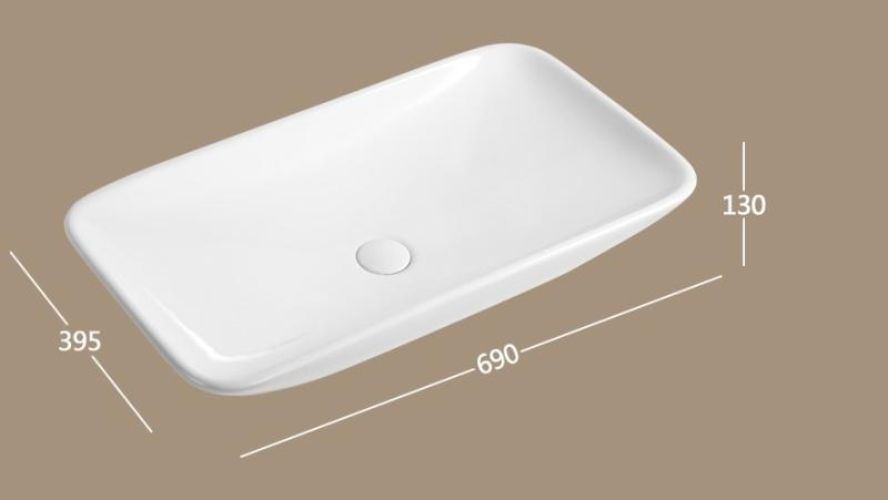 Lavoar dreptunghiular WASHINGTON, din porțelan, montaj pe blat, 69×39,5 cm – alb