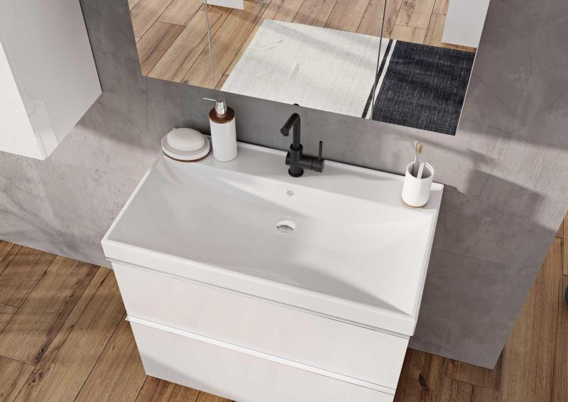 Lavoarul MAXXI 80×46 cm este alegerea perfectă pentru băile moderne ce necesită funcționalitate și stil. Construit din porțelan de calitate superioară, acest model încorporabil se integrează armonios în mobilierul de baie, având un design minimalist cu finisaj alb lucios. Este echipat cu orificiu pentru baterie, fiind compatibil cu baterii standard.