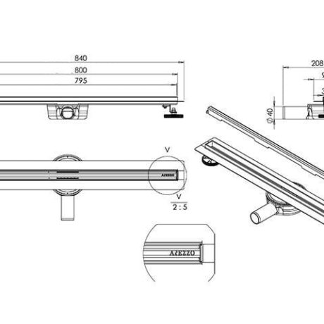 Rigola de duș 2în1, cu lungimea vizibilă de 800 mm, este realizată din oțel inoxidabil tratat, finisată cu efect periat auriu, ce oferă un aspect elegant și modern oricărei băi. Grilajul reversibil permite alegerea între varianta placabilă sau finisaje mate negre și steel, oferind flexibilitate maximă la montaj.