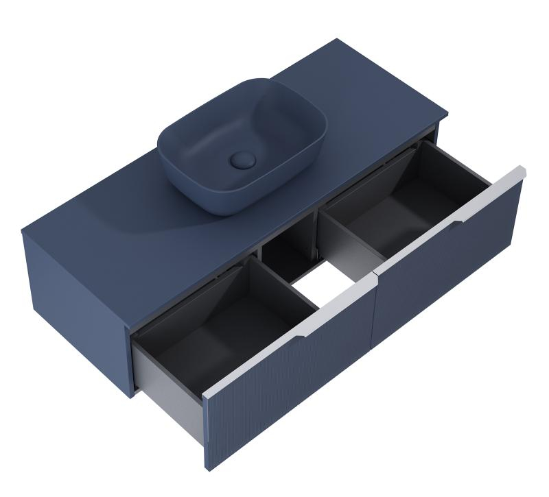Acest dulap baie 120cm cu 2 sertare navy blue mat îmbină estetica modernă cu funcționalitatea superioară, fiind ideal pentru cei care caută mobilier de baie elegant și practic.
