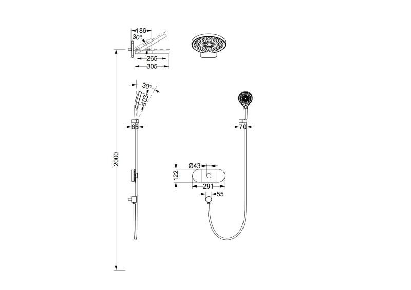• Cap de duș reglabil (0° – 30°) pentru un jet personalizat